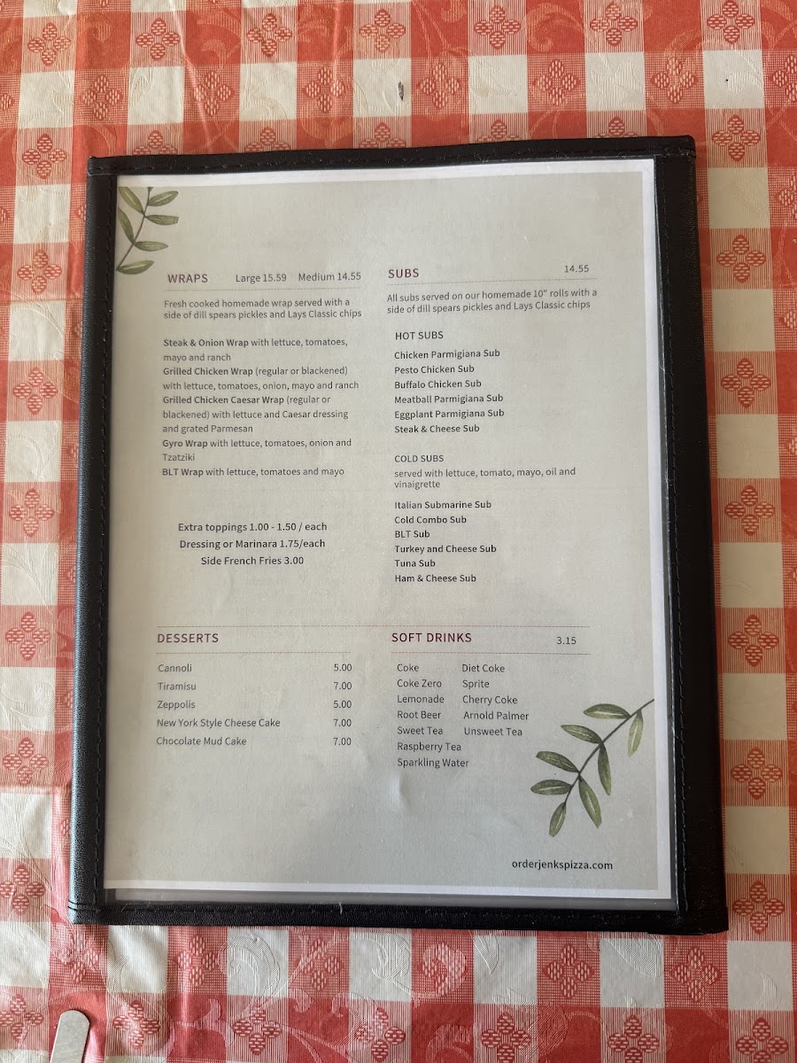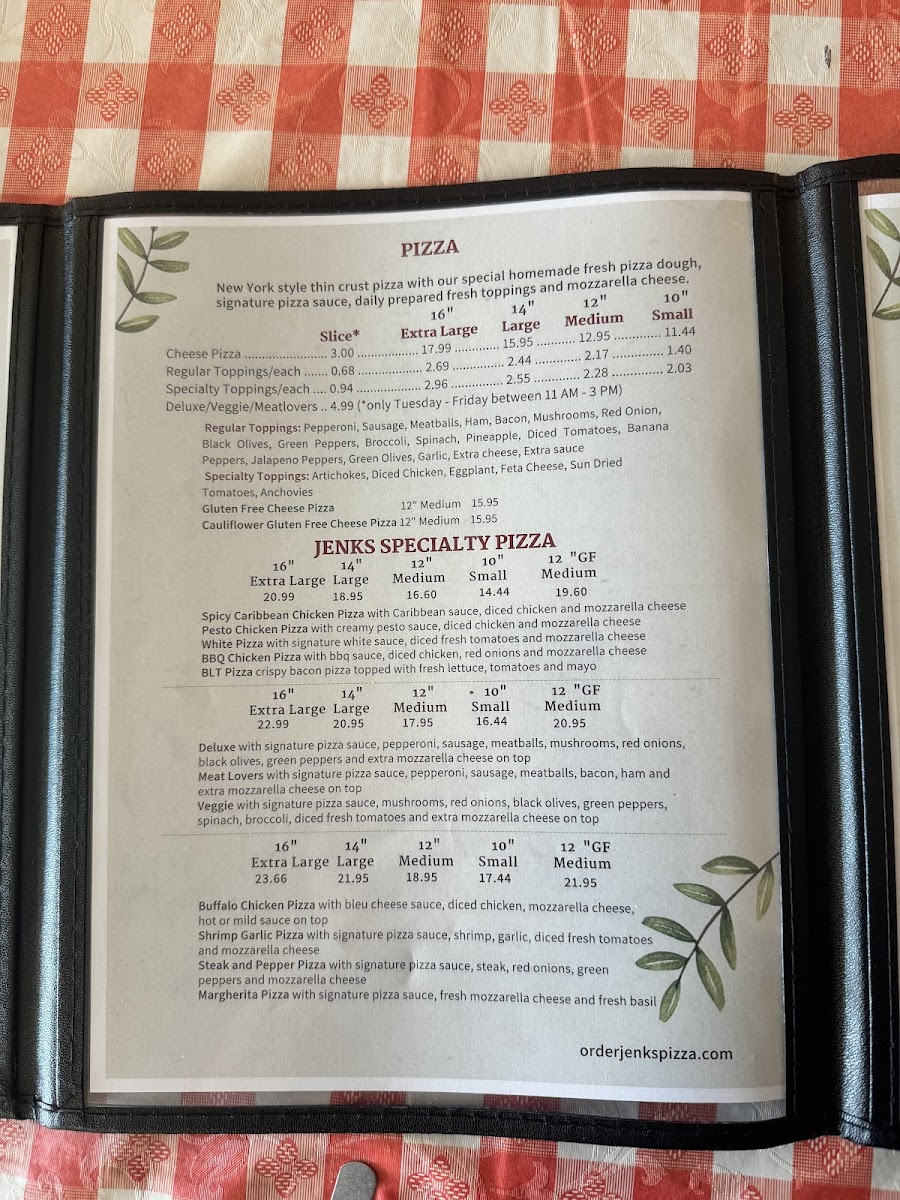 Overall, Jenk's Pizza has a rich menu that offers something for everyone, whether you’re in the mood for pizza, pasta, or a delicious sub. The variety, value, and flavor make it a top choice for both quick lunches and leisurely dinners.